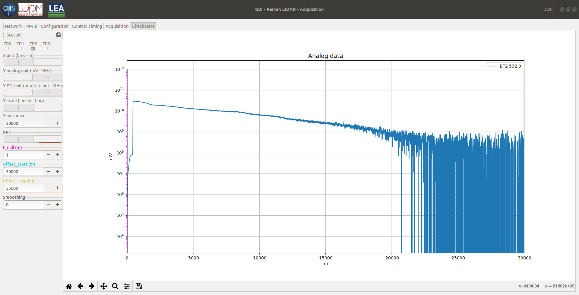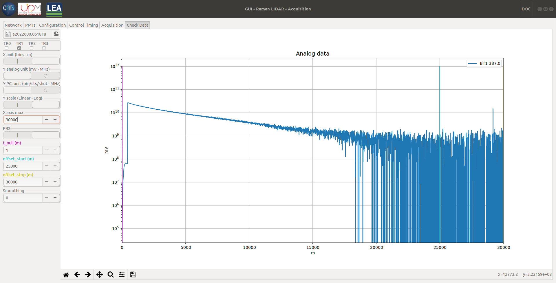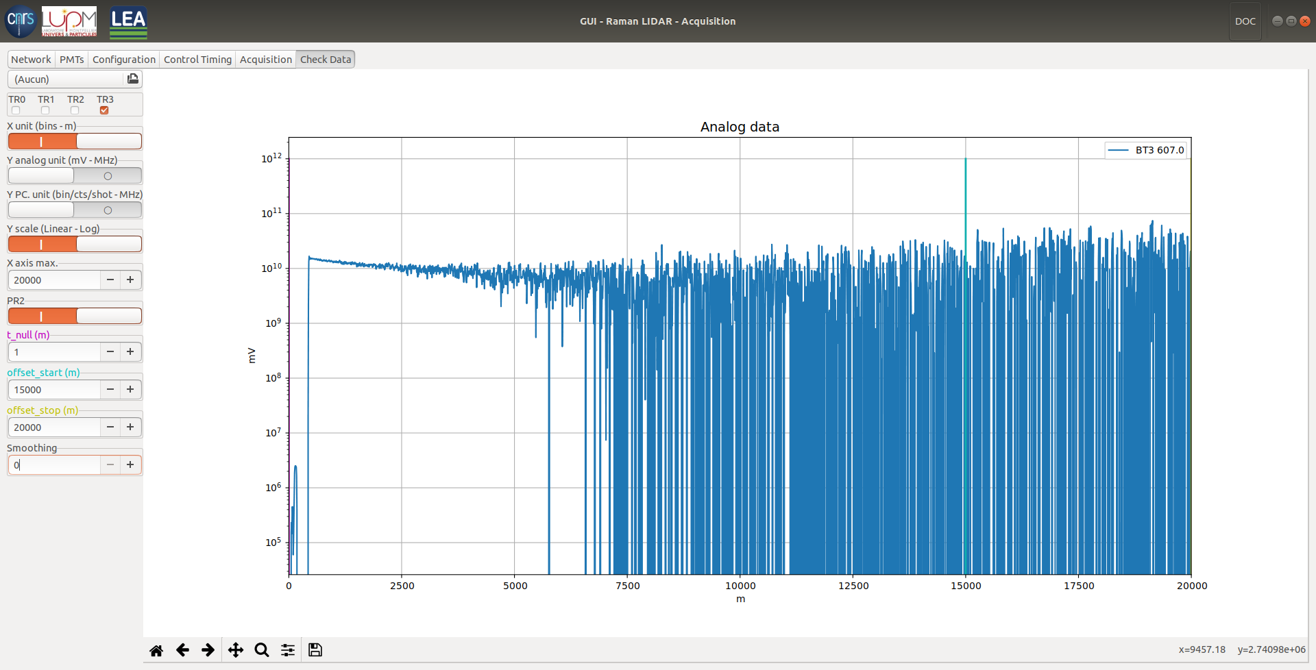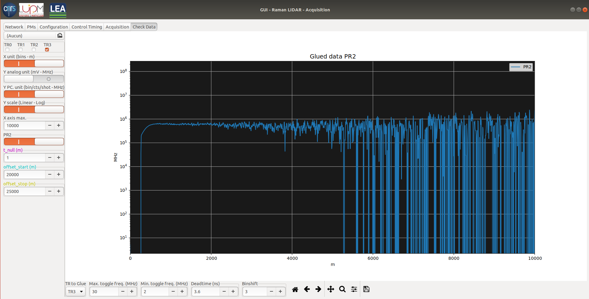 We register data on all four data lines simultaneously, using the analog and current photon mode. Actually using the Licel proposed gluing formula we merge data to get a complete spectrum from as low as 200m and up to few 10nths of km (depending on wavelengh).